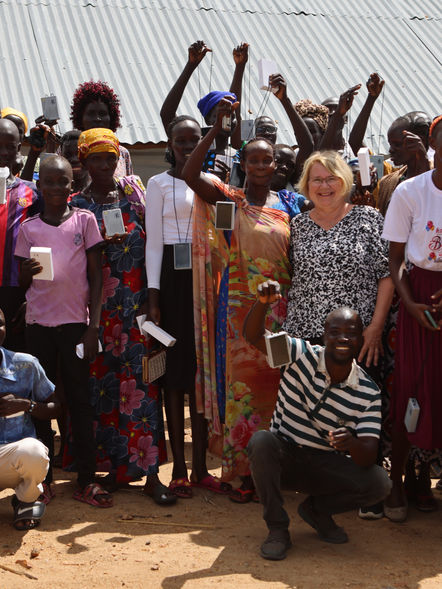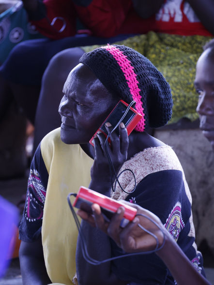 HAGCM distributes solar radios to refugees, donated by partner ministries Sonset, Galcom, PSGL and individual supporters.